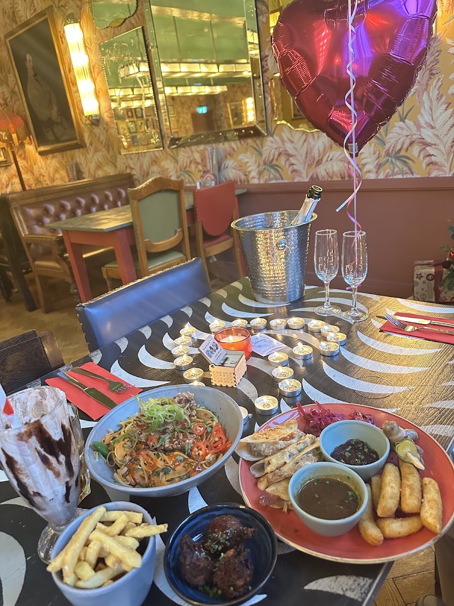 Met up with 4 friends for our Christmas lunch. Greeted and seated quickly on our arrival. We weren't asked if we wanted to order drinks whilst we waited for others to arrive, so we had to go to the Bar. Food was served promptly when everyone arrived. We had ordered from the special Christmas menu, which was good value for money. My starter, Mini Baked Camambert, was nicely gooey but could have come with either a honey dressing or a spicy chutney side to give it more oomph ! The bread served for dipping was sadly hardly toasted, so didn't serve its purpose. My main course, the Turkey Curry was delicious, as were all the accompaniments. The dessert, Toffee Apple Choux was a very indulgent triumph. The Korean Prawn Cocktail, Turkey Tacos and Cheesecake went down well with my friends . Strangely, again, we were not asked at any point if we wanted drinks. Throughout service was efficent and friendly, despite them being rather busy with several Christmas party diners. I would certainly go again if I was in the area, as Lupo had a nice feel and an interesting menu.